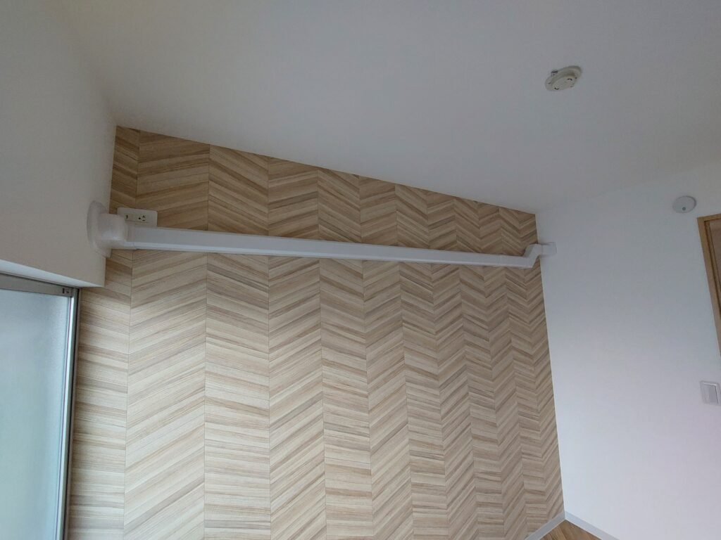 室内機を設置した位置から1部屋挟んでの設置となる為、部屋内を配管が横断しています。