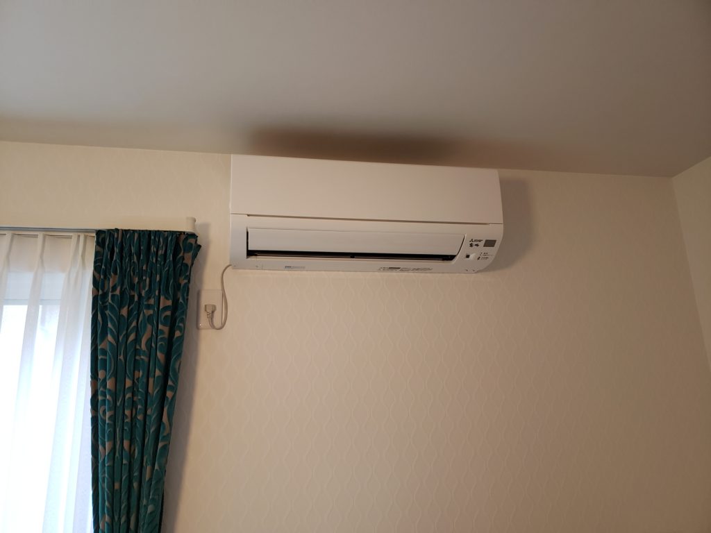 こちらのエアコンは、室内は一般的な背面の穴を開けて配管を出す設置方法です。