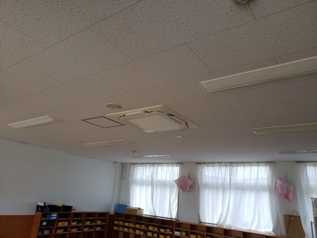 神戸市北区の幼稚園にて、業務用の天カセエアコンの設置工事が完了しました。