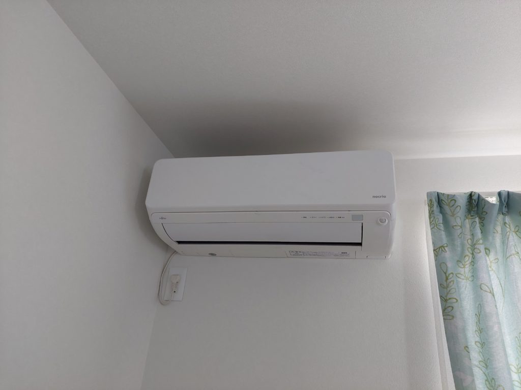 室内機が2階で室外機が1階設置です。