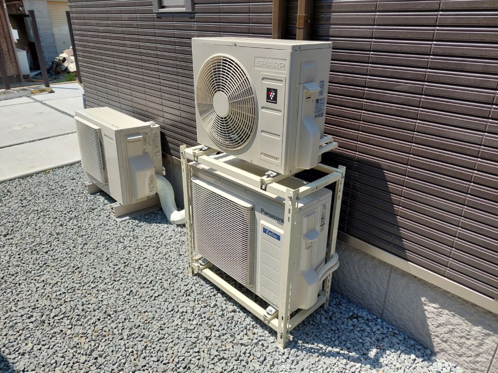室外機2段置き設置です。