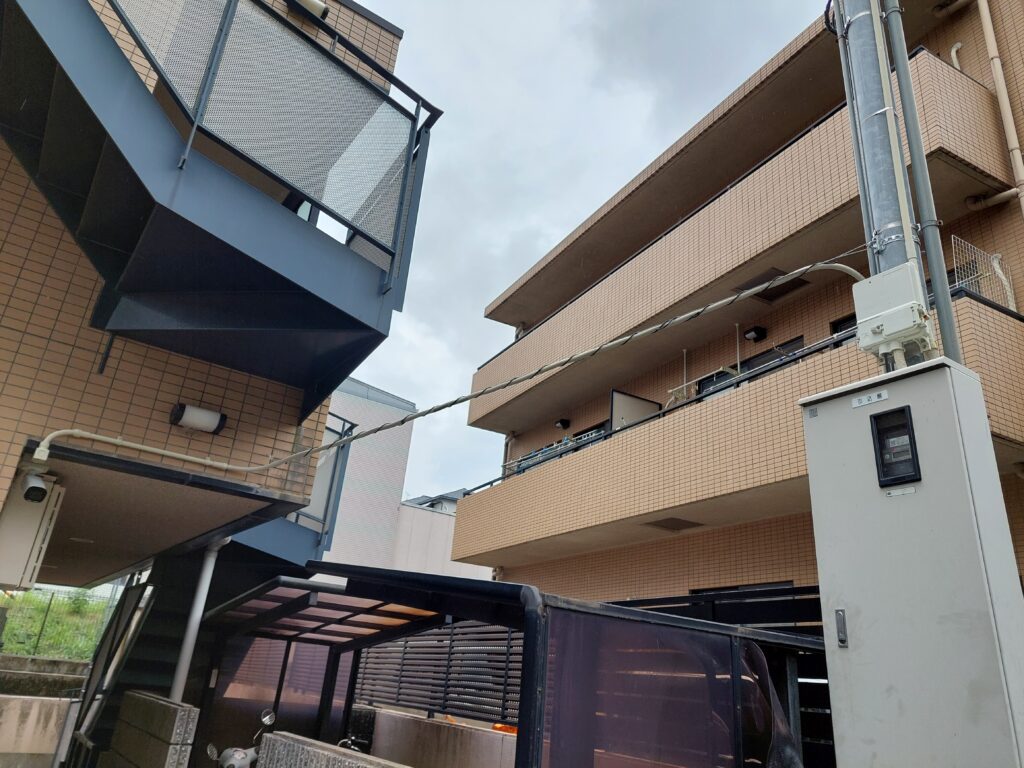 神戸市東灘区にあるマンションにて、防犯カメラ工事の完了です。