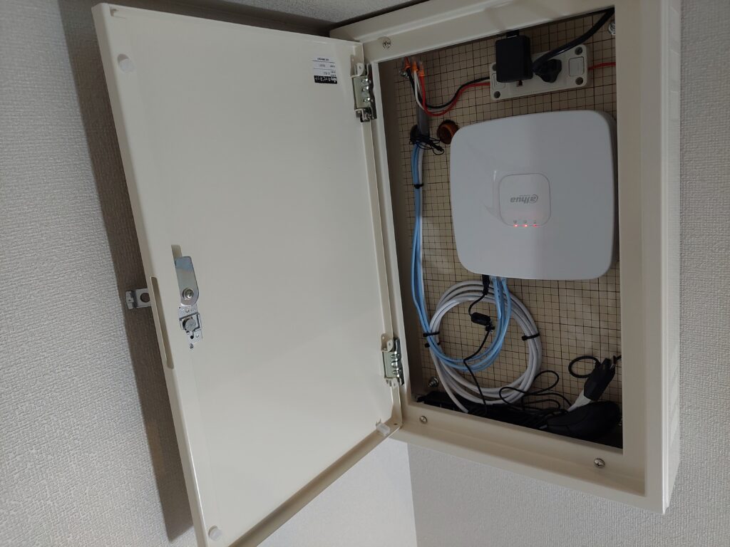 神戸市須磨区 マンション 防犯カメラ設置工事 防犯カメラ 公開日2023.11.29 神戸市須磨区の新築マンションにて防犯カメラ設置工事です。 建築時に録画機器から防犯カメラ間に配管を敷設して頂いています。 建物が完成したら、配線を入線します。 天井の色に合わせてブラック色のカメラです。 共用部の倉庫内にキャビネットを設置し、録画機器を収納しています。 先行配管をしている為、配線が見えない綺麗な仕上がりになりました。 防犯カメラ 神戸 マンション « 前の記事へ 次の記事へ »