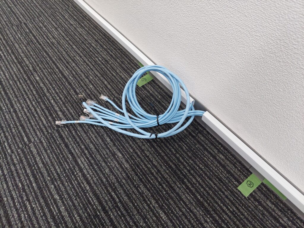 カテゴリー6A LAN工事 神戸市中央区 電気工事その他 公開日2024.04.03 神戸市中央区にてLAN配線工事です。 ルーター機器からHUBまでの幹線にカテゴリー6Aを使用しています。 HUB機器設置予定位置 各PC機器からHUBに配線が集まっています。 机を配置する場所にLANケーブルを敷設しています。 内装工事が終わってからの配線の為、モール施工となりました。 LANケーブルと電話配線 人が通る場所は、ワゴンモールを使用しています。 ワゴンモールは、かまぼこ状になっている踏んでも痛くないカバーです。 « 前の記事へ 次の記事へ »