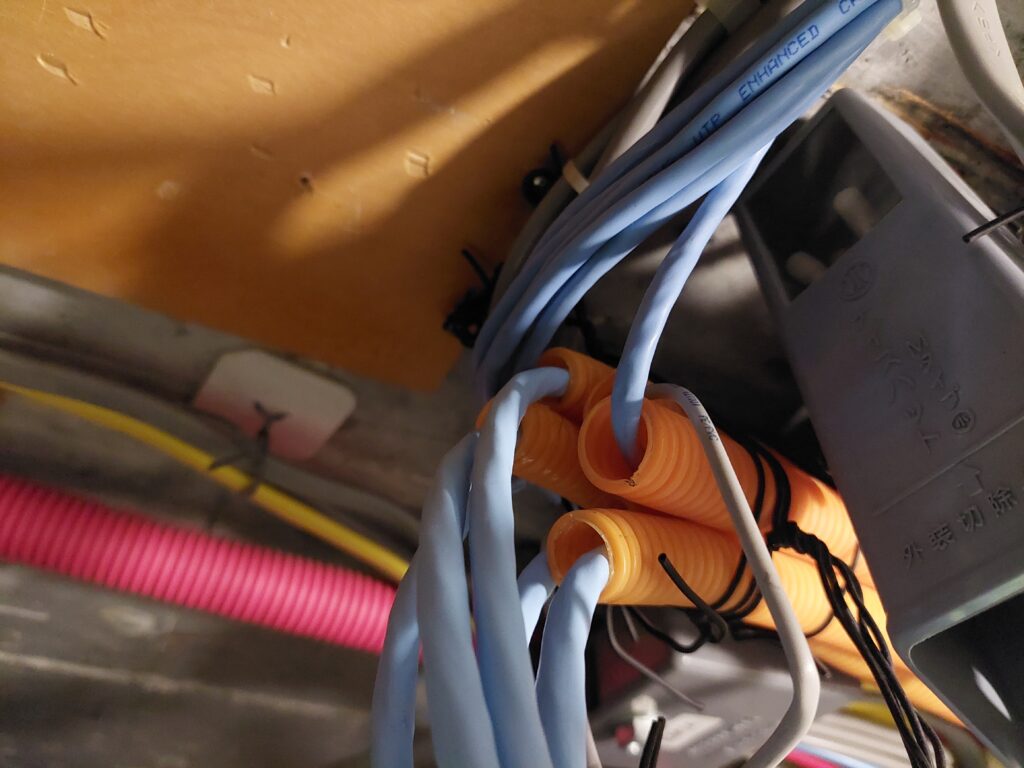 今までカテゴリー5eを使用していた為、HUB機器から各部屋まで配管があります。