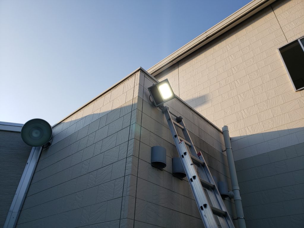 神戸市西区【投光器取替工事】 電気工事 公開日2020.06.20 神戸市西区にて、水銀ランプの投光器からLED投光器に取替です。 取替前の水銀ランプの投光器です。 取替後。 明るさは、以前の器具より一回り明るい投光器を設置しています。 上下だけではなく左右(回転)をして首振りが出来ます。 神戸市西区 « 前の記事へ 次の記事へ »