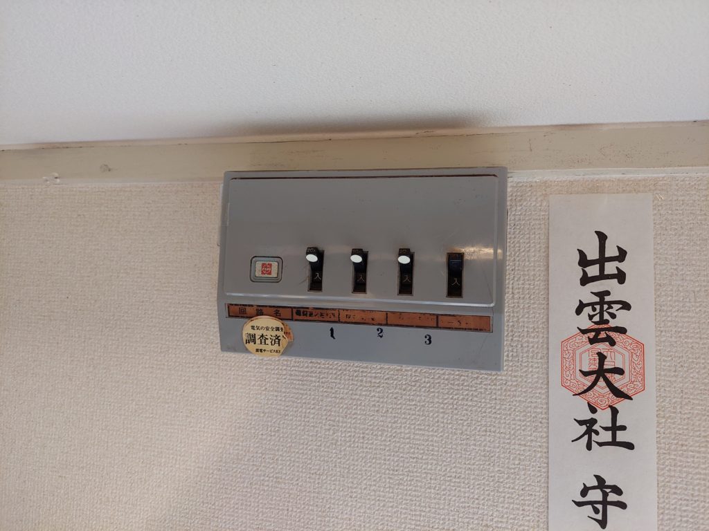 主幹ブレーカー(引き込み配線を保護する為のブレーカー)が無い古い分電盤から、漏電機能付きの分電盤に取り替えです。