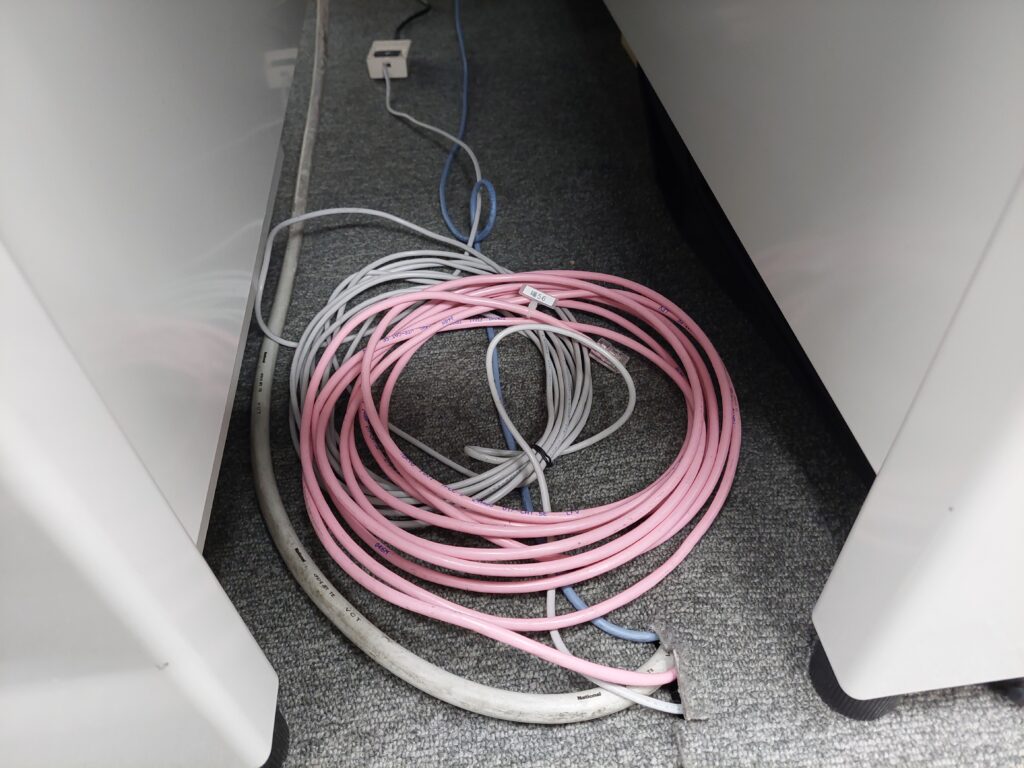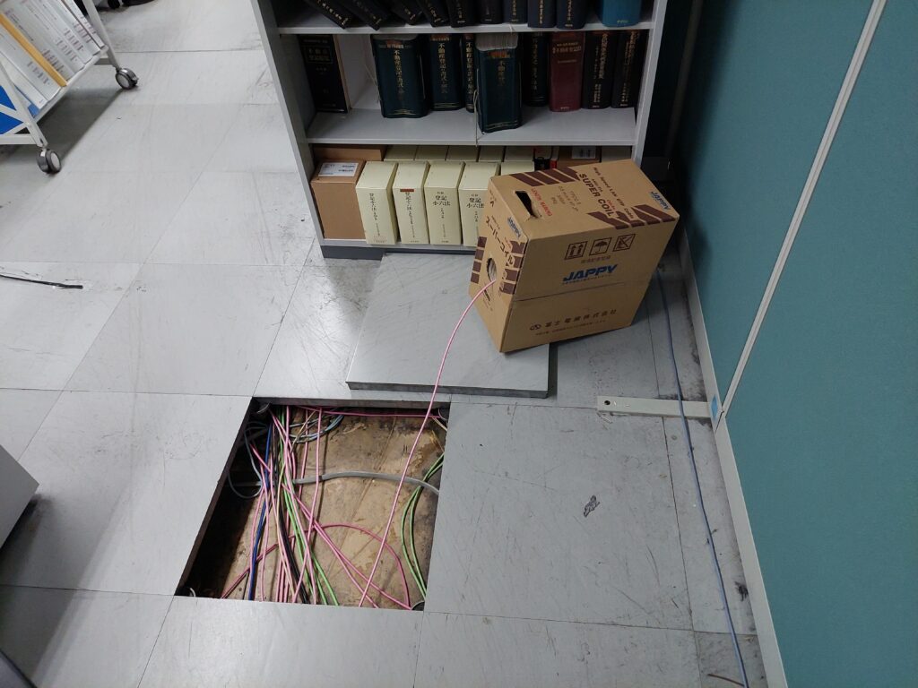 数カ所の床をめくり、目的の机下から配線を取り出します。