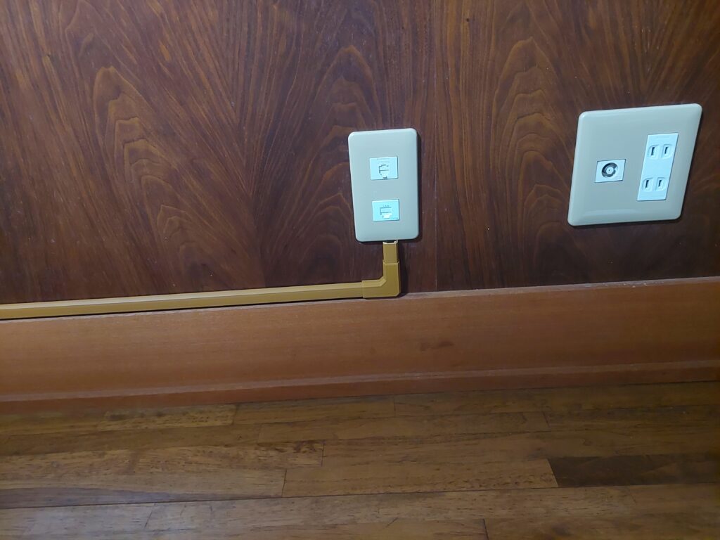 三木市 モール施工 三木市 電気工事その他 公開日2024.03.06 三木市にてLAN工事です。 LANの差込口を増設です。 壁の中に配線が出来ない為、露出配線です。 木目の壁の為、茶色のモールを施工しています。 他にも濃い茶色や木目柄もあります。 基本色はホワイトになりますが、色指定がある場合は、お気軽にお申し付けください。 LAN工事 モール工事 三木 « 前の記事へ 次の記事へ »