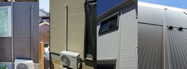 屋外化粧カバーの色は、外壁又は雨樋やサッシの色に合わせて頂くと、綺麗な仕上がりになります。